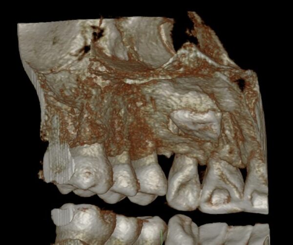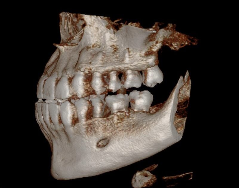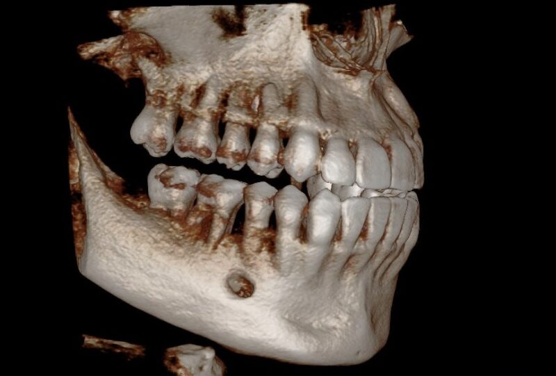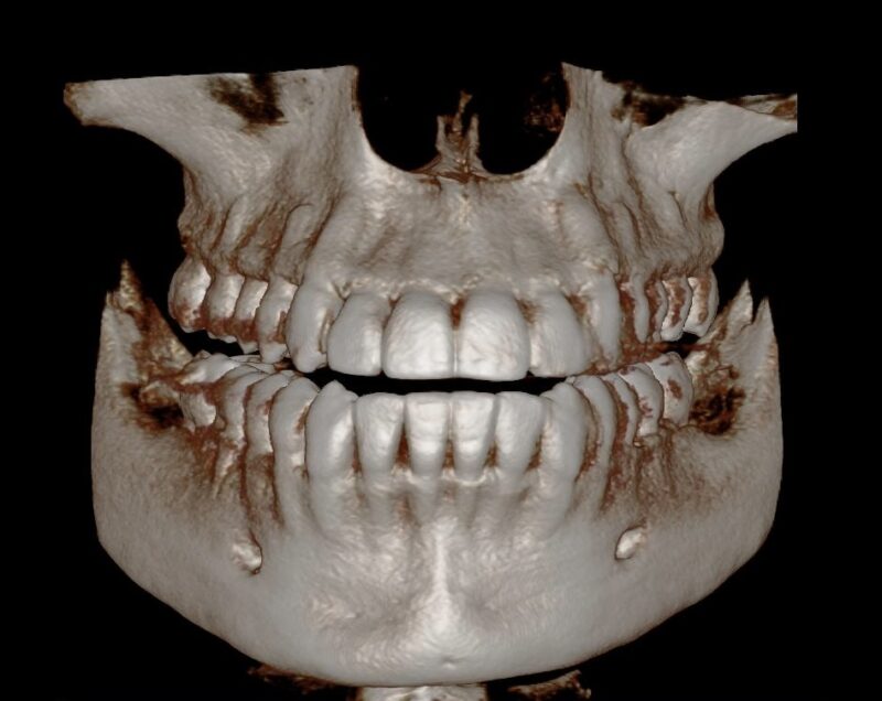 Este tipo de imagen brinda una perspectiva completa de la boca del paciente. Se pueden identificar patologías en las raíces dentales, y el estado de las articulaciones y sus maxilares.
