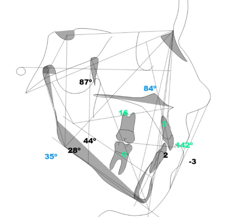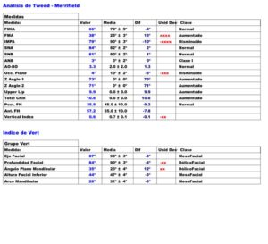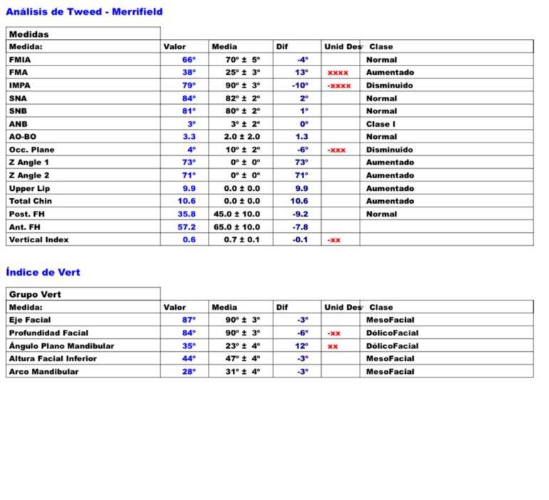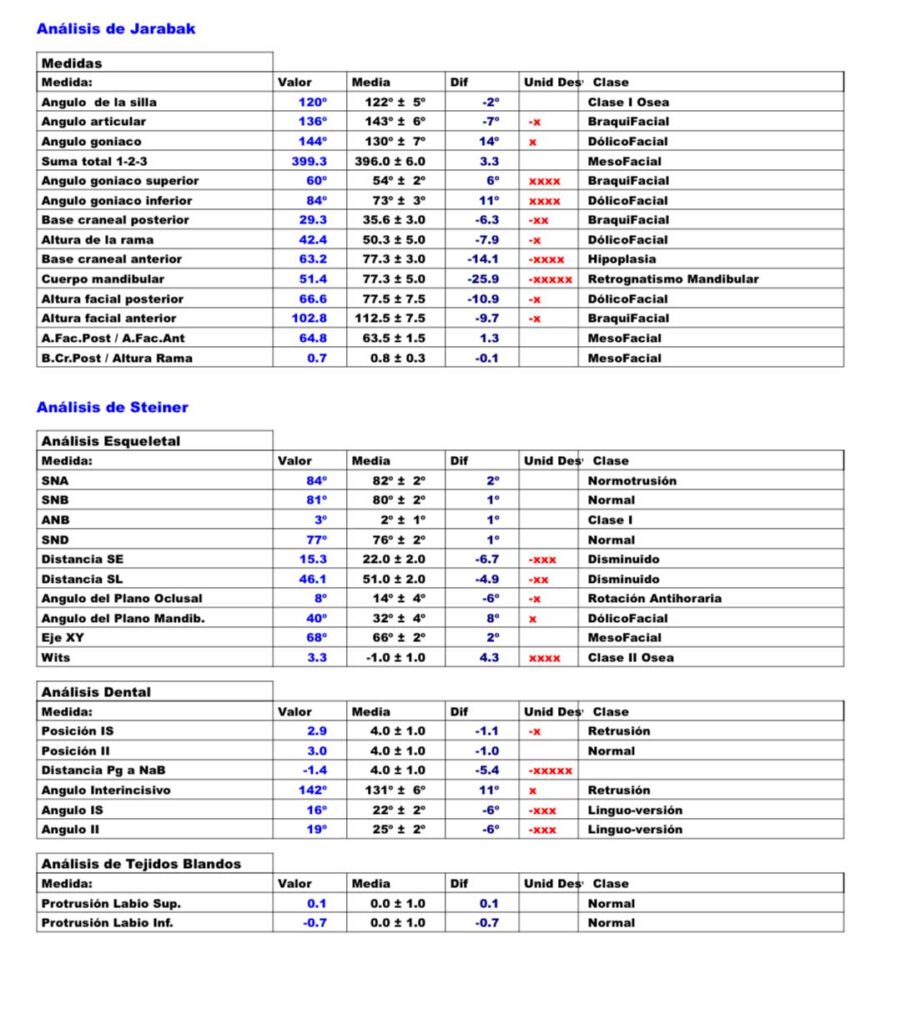 Medidas que se obtienen del cráneo humano mediante la radiografía cefalométrica. Estas son dadas de forma automática por nuestro sistema digital para facilitar la elaboración de diagnósticos y evaluaciones de control y postratamiento en ortodoncia.